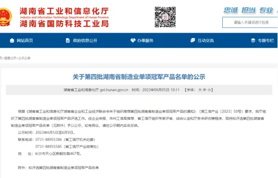 Hunan Province's manufacturing industry single champion products refer to products that have long focused on segmented product markets, with domestically leading production technology or processes, and a market share ranking among the top in the country for single products. The selection criteria have strict standards, such as "having a high market position and market share in the segmented market, the product ranks among the top 3 in the country and the first in the province", and "the key performance indicators of the product are at the leading level of similar domestic products". The principle of applying for national level manufacturing industry single champion enterprises (products) is to recommend them from provincial-level manufacturing industry single champion products. When selecting provincial-level manufacturing industry single champion, priority will be given to recommending enterprises and products that meet the conditions for national level manufacturing industry single champion.