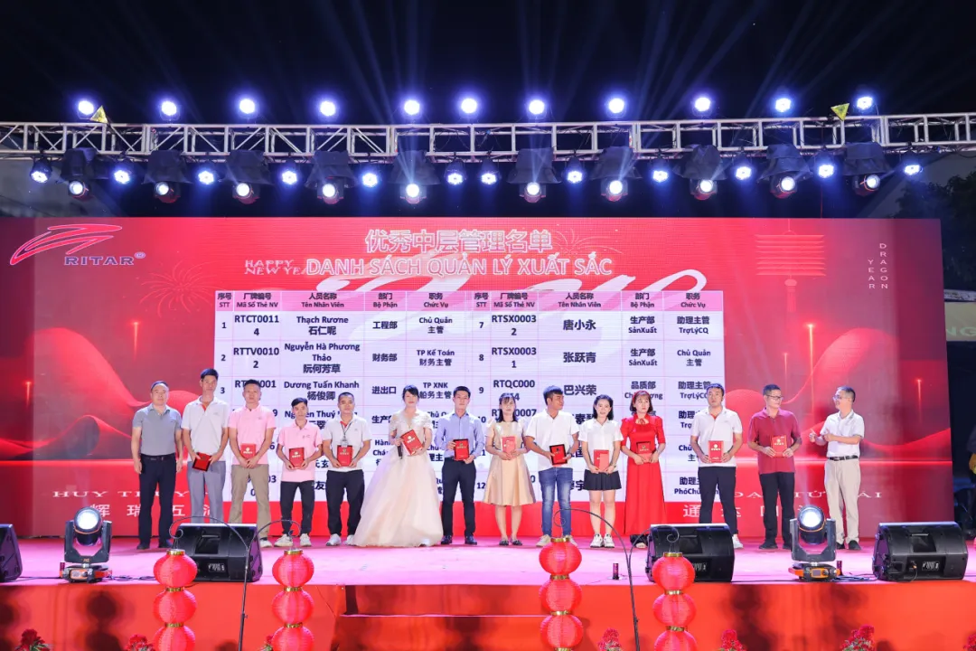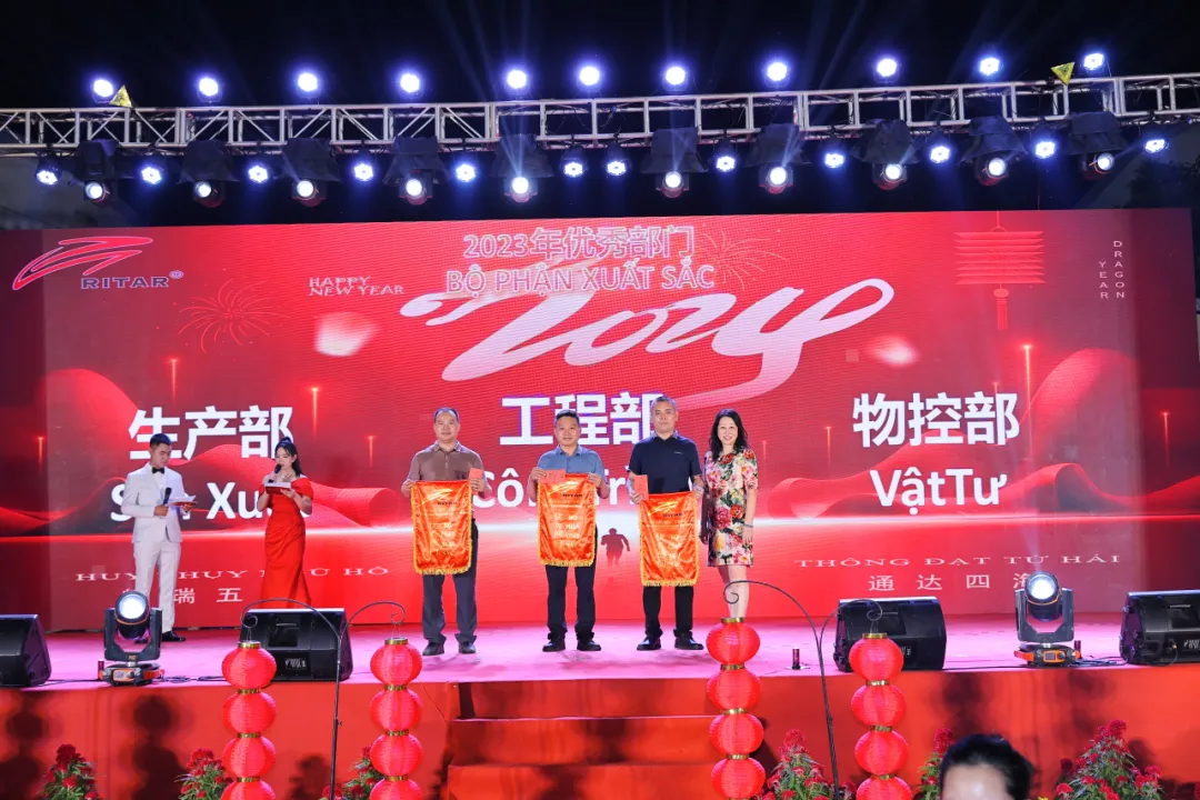 All things present a prosperous and prosperous era, and the Nine Dragons offer auspiciousness to celebrate a good day. Ritar International Group Vietnam Branch also welcomed its annual grand celebration - the 2024 Spring Festival Gala and Commendation Conference. At this beautiful moment of gathering and welcoming the New Year together, the leaders of the group and all employees of the Vietnamese company gather together to review the hard work and brilliant achievements of the past year, and look forward to a hopeful future.